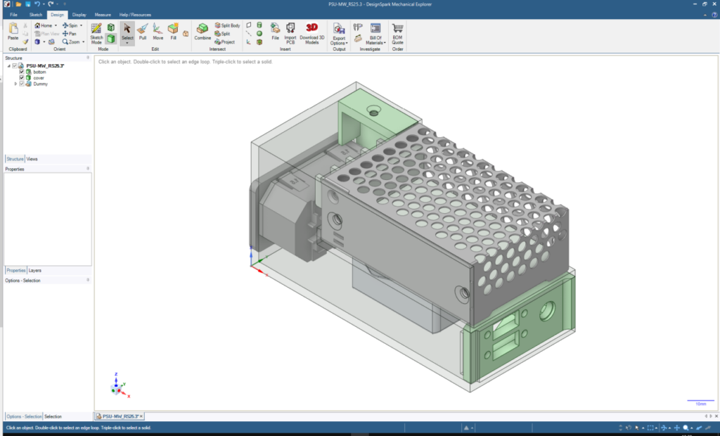Als CAD-Software verwende ich DesignSpark Mechanical Explorer v6.0.3 in der freien Version. Ich bin kein Mechanikdesigner und habe mir den Umgang mit dem Programm selbst beigebracht.