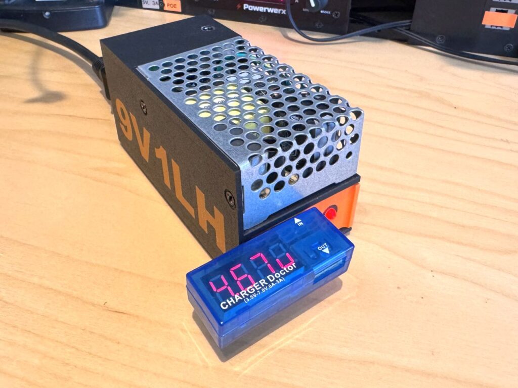Da der Raspberry Pi 5,1 V DC benötigt, habe ich die Ausgangsspannung des Netzteils zunächst mit einem Multimeter exakt auf diesen Wert eingestellt. Danach habe ich nochmals überprüft, ob Plus und Minus korrekt auf die USB-Buchsen gelegt waren.