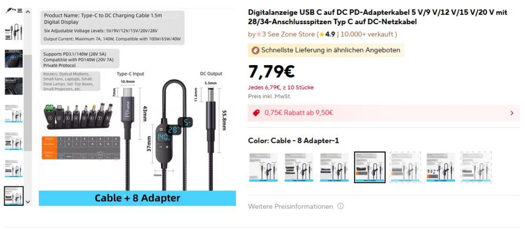 USB C auf DC PD-Adapterkabel bei AliExpress (Affiliate Link)