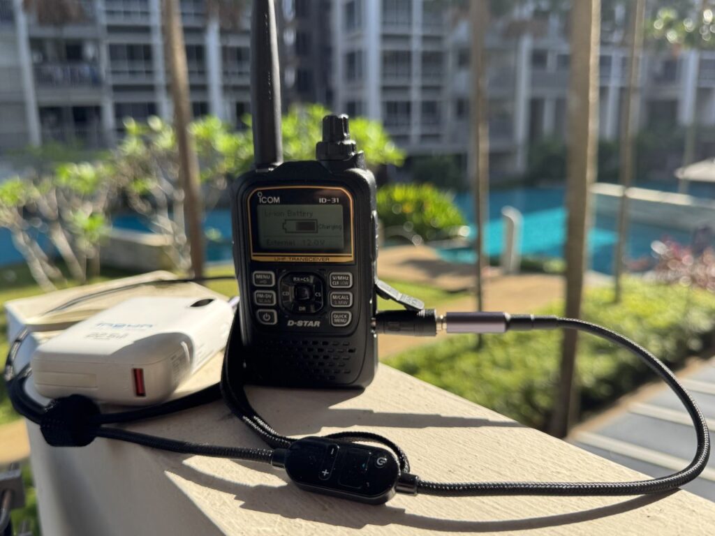 ICOM ID-31 Plus im portablen Einsatz: Stromversorgung und Laden per Powerbank mit USB-C-auf-DC-Kabel