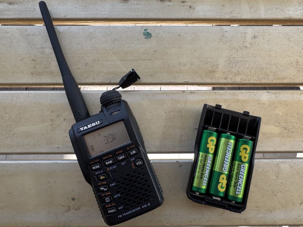 YAESU VX-3 mit zusätzlichem 3×AA-Batteriegehäuse