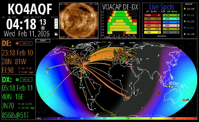 Auch wenn sich das Projekt noch in Entwicklung befindet, sind bereits zahlreiche Funktionen umgesetzt und erfolgreich getestet – von Wetter- und Wolkenkarten über DRAP- und MUF-RT-Darstellungen bis hin zu VOACAP-Berechnungen, PSK-Reporter, WSPR-Daten und Contest-Kalendern.