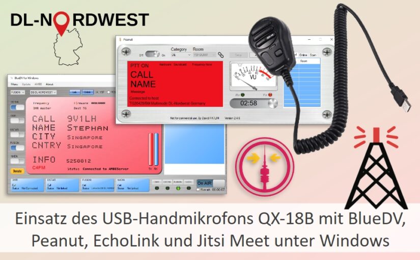 Einsatz des USB-Handmikrofons QX-18B mit BlueDV, Peanut, EchoLink und Jitsi Meet unter Windows